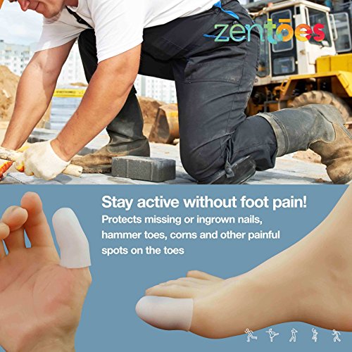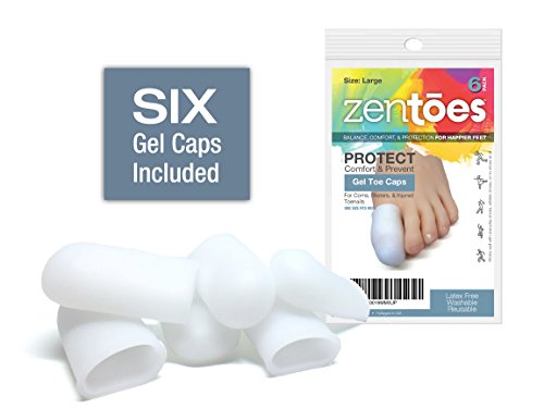 ZenToes 6 Pack Gel Toe Cap and Protector - Cushions to Protect the Toe and Provides Relief from Missing or Ingrown Toenails, Corns, Blisters, Hammer Toes and Other Painful Conditions - Size Large