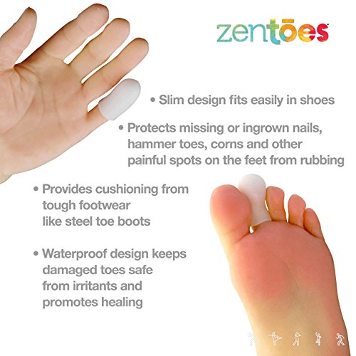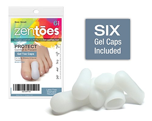 ZenToes 6 Pack Gel Toe Cap and Protector - Cushions to Protect the Toe and Provides Relief from Missing or Ingrown Toenails, Corns, Blisters, Hammer Toes - Size Small