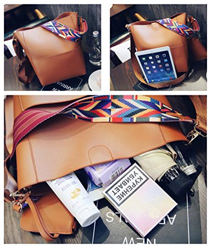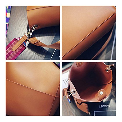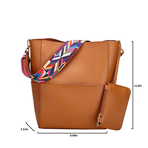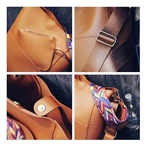 -. Feature : MATERIAL:High quality leather with high quality metal buckle and high quality canvas handle. / DIMENSIONS:handbag:9.45"L x 11.81"H x 5.12"W, Height of Handle. 9.05". the weight is 1.3 lb. purse:5.9"L x 4.3"H x 0.4"W,the weight is 0.2 lb.please mind the size before place the order. / STRUCTURE:This bag has an open pocket on each side, the main bag is a whole pocket, no separation. Easy to put and come out.Accompanied by a small wallet, you can put coins or data lines and other items. / FEATURES:Unique structural design, each side of the bag has a pocket. There is a can handle, can not adjust the length of the canvas handle, handle length longer, you can hang on the shoulder. There is a shoulder strap that can be disassembled and can adjust the length. Can be used as a handbag can also be used as a shoulder bag. Bag with a strong suction of the magnetic buckle sealed bag. / Bag with artificial leather with the smell, please open it in a ventilated place, two or three days will be dissipated.Accept returns or exchanges if you're not satisfied with it for any reasons. We promise that we can give you a good solution.