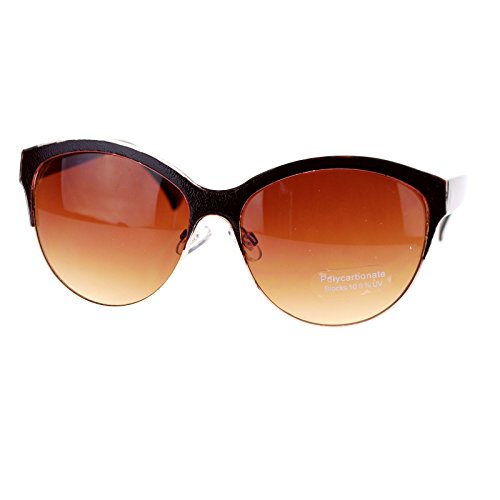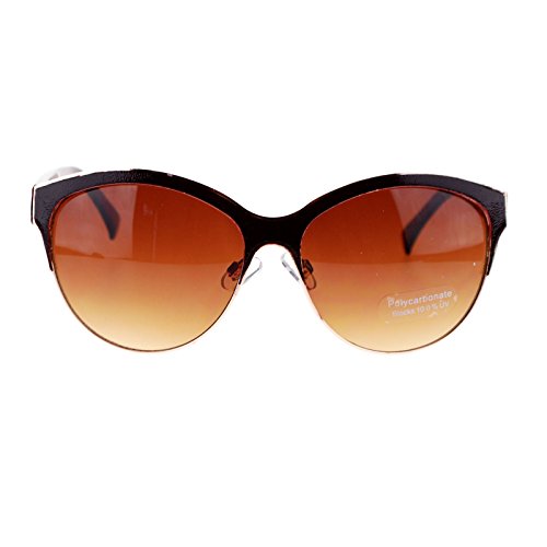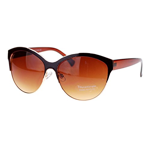 Womens Metal Oversize Half Horn Rim Cat Eye Sunglasses
