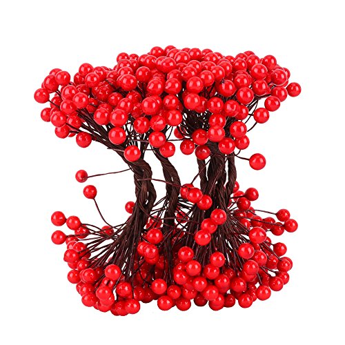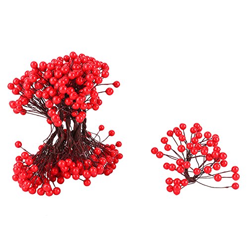 - √.Size:Total length:Approx. 14.6 cm/ 5.7 inch (when the wire is straight); berry diameter:8 mm.Great for making Christmas ornaments,twisting around treat bags,embellishing cards,etc.