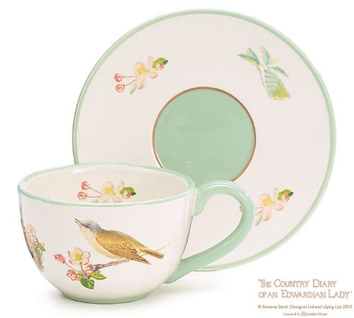 -. Feature : Birds of Olton design on ceramic teacup and saucer. / Measures:Teacup: 2 1/2"H X 3 1/4"Opening Saucer: 5 3/4"Diameter / Holds:8oz / Dishwasher safe/FDA approved/Microwave safe.