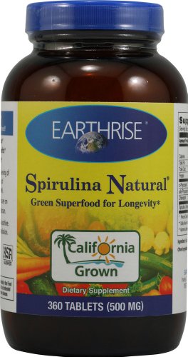Studio : Earthrise Publisher : Earthrise Binding : Misc. Product Description Spirulina 500mg 360 TabletProduct Description: The foundataion of all Earthrise products is Spirulina Natural, which is a Green SUPER Food for Longevity* and provides Immune Defense Natural Antioxidant Protection*. Eat your Spirulina greens for good health* Supplement your intake of fruits and vegetables with 1 serving of Earthrise Spirulina a day - the natural antioxidant content (beta-carotene). Earthrise Spirulina promotes immune health provides antioxidant benefits*. Key features at a glance- Rich in antioxidants.