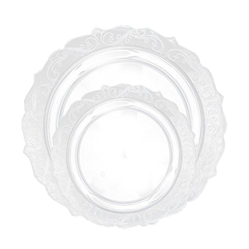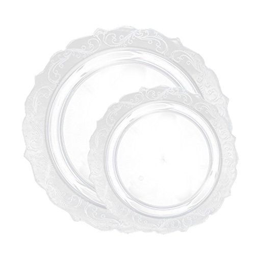 Posh Setting Elegant Collection Combo Pack China Look Clear Plastic Plates,(Includes 4 Packs of 10 Plates, 20 10.25'' Dinner Plates and 20 7.25'' Salad Plates), Fancy Disposable Dinnerware