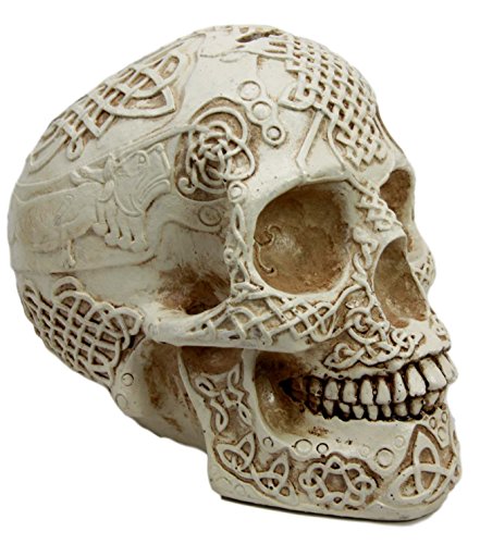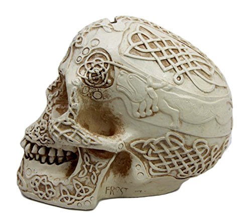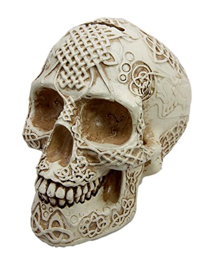 Are you looking for an exotic skull figurine with a touch of functionality on it? This Celtic Money Bank will do the job perfectly! Sculpted in great details, the skull money bank is hand painted with a bonelike cream colored finish. It will be an awesome decor for any party or Halloween event!
