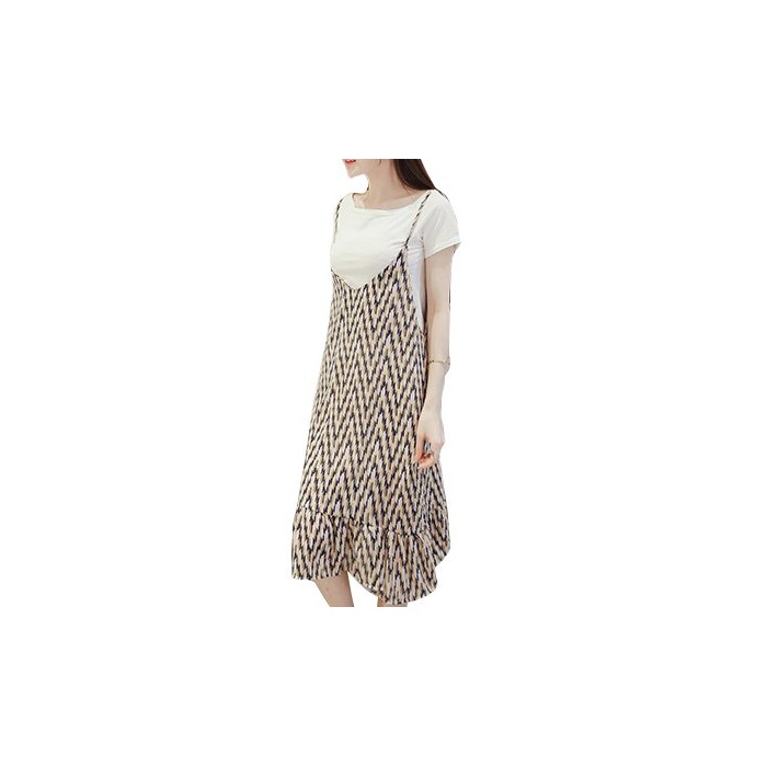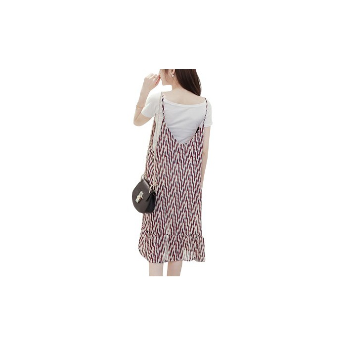 (Les Hiboux) 레트로 캐주얼 기하학무늬 캐미숄 원피스 미모레장 레트로 디자인 스커트