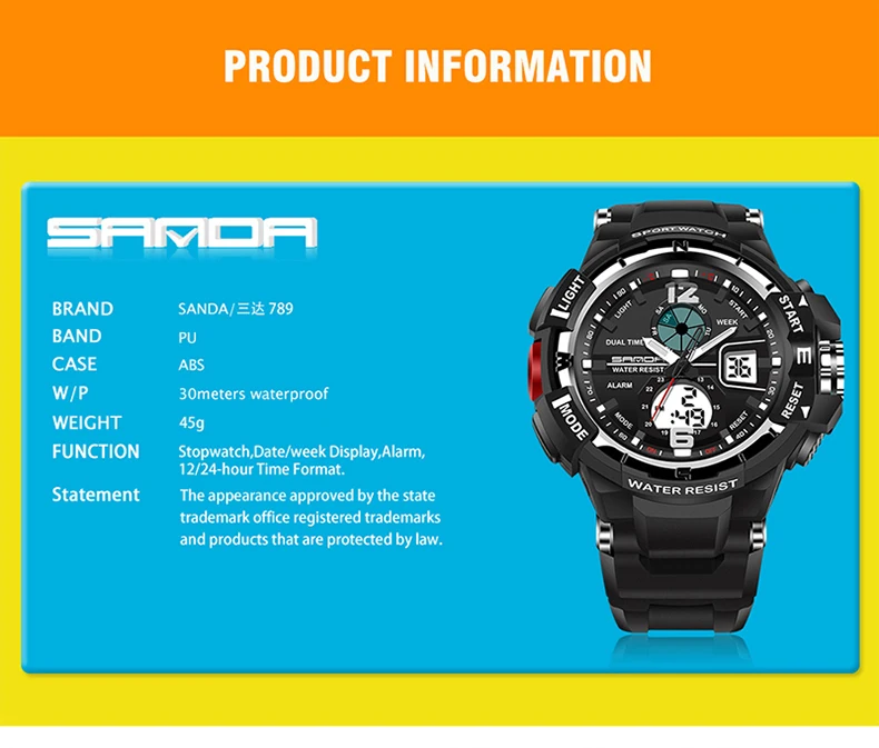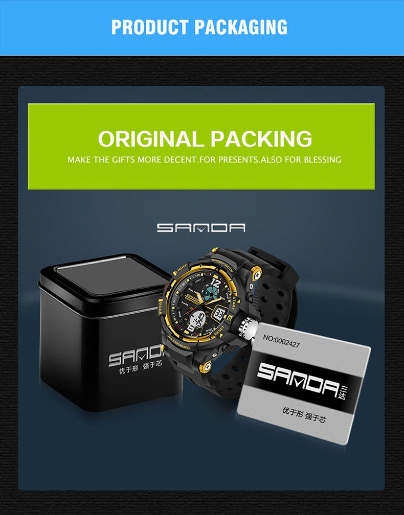 Feature:Water Resistant,LED display,Multiple Time Zone,Stop Watch,Back Light,Complete Calendar,Shock Resistant,Diver,Chronograph,Auto Date,Alarm,Swim