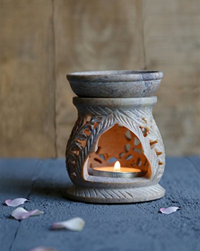 FEATURES: This oil burner/t-light holder is engraved with intricate floral patterns.