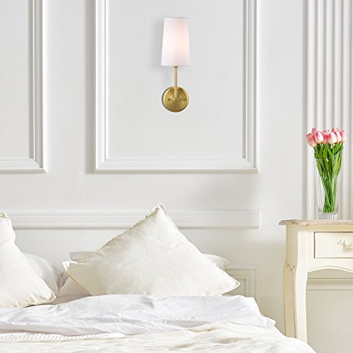 Forma Sconce Brushed Brass One-Light Fixture with Fabric Shade - Hardwire Wall Mount Lighting - UL Listed - Linea di Liara LL-SC482-AB