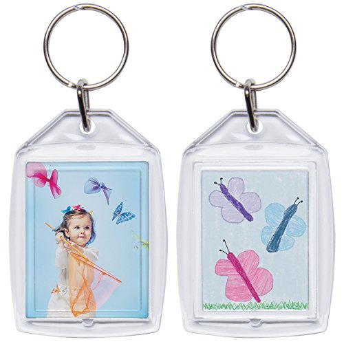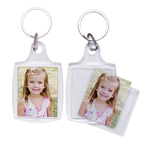 Design your own insert using photos, kids' drawings, or embroidery. This high quality acrylic keychain holds two inserts, one on each side. Assembling this do it yourself keychain is very easy, just pop out the plastic piece, place down your insert, then snap the plastic piece back on. This make your own keychain is a sure to be a parent pleaser or makes a great special event giveaway.Feature