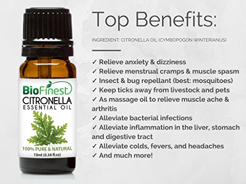 BioFinest Citronella Oil - 100% Pure Citronella Essential Oil - Premium Organic - Therapeutic Grade - Best For Aromatherapy - Ease Headache - Pain Relief -...
