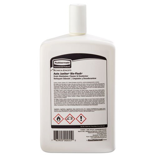 Studio : Rubbermaid Commercial Products Publisher : Rubbermaid Commercial Products Binding : Misc. Product Description Rubbermaid Commercial FG400055 BioFlush Drain Maintenance Solution Refill for Auto Janitor Toilet and Urinal Cleaning Systems. Concentrated foaming action cleans and reduces bacteria growth everywhere the water goes. Auto Janitor BioFlush formula is enzyme-based to help prevents scale build-up in drain pipes. For use with Auto Janitor dispenser. Auto Janitor cleans and deodorizes toilets and urinals while providing a clean fresh scent for the restroom. Made in the USA. 0