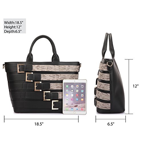 -. Brand : MKY -. Department : womens -. Feature : DIMENSIONS: 17"W x 11"H x 6"D / Handle Drop Length: 5.2" / Shoulder Strap Length: End to End 48" ; Fashionable, practical and multi-function design ; It can be used as a laptop tote bag; beach bag; travel tote; shoulder bag ; fashion women handbag etc. -. ProductGroup : Shoes -. ProductTypeName : HANDBAG -. Title : Extra Large Leather Tote Bag Designer Shoulder Handbag Buckle Details Removable Strap