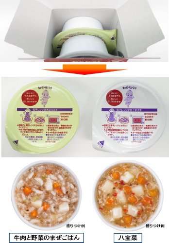 牛肉と野菜のまぜごはん:牛肉、野菜、きのこなどを昆布だしでじっくり炊き上げたごはんです。八宝菜:鶏肉や角切り野菜などの素材を使った、ほのかにごま油が香る赤ちゃんのための八宝菜です。