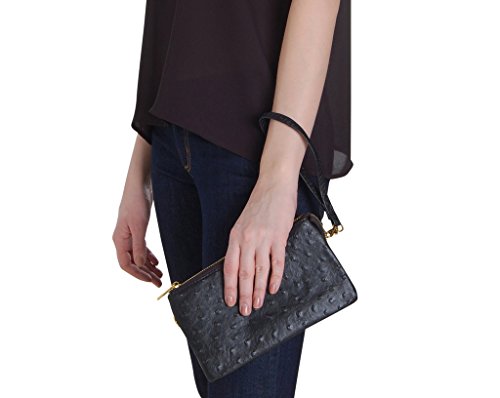 -. Feature : ELEGANT DESIGN & SUPERIOR QUALITY - This top zip patterned convertible bag comes with detachable long and short straps. The interior features 6 credit slots, center coin purse with zipper, and two expandable side compartments. / CUSTOMER SATISFACTION GUARANTEED - Questions or concerns? No worries, all Humble Chic NY products are fulfilled by Amazon and eligible for 100% free returns for 30 days with no questions asked. Enjoy a RISK FREE purchase today. / AUTHENTIC BRANDED ITEM - Humble Chic NY is a registered US trademark and the only authorized seller of the original Ostrich Convertible Wristlet - Vegan Leather. The perfect gift for yourself or Christmas present for mom, relatives, co-workers, or friends. / SIZING - Approximate Measurements: 5 inch x 8.5 inch. Includes 2 Straps: Shorter wristlet strap length: 8.5"; Longer cross-body strap length: Extendable to 60" / CARE TIPS - Vegan leather is a high quality, scratch-resistant, lightweight synthetic material that feels and wears like soft leather. Water resistant and easy to clean with a damp washcloth or towel.