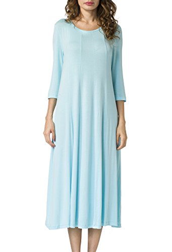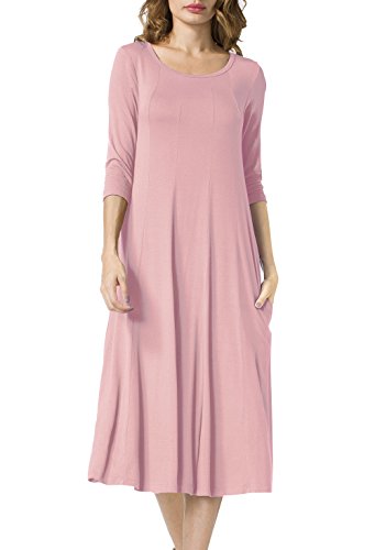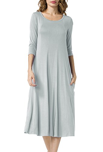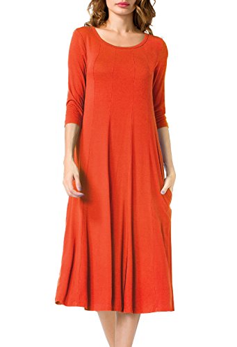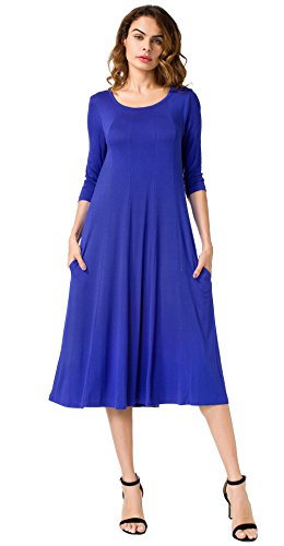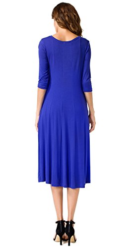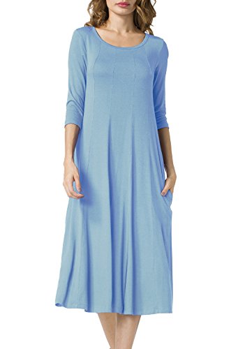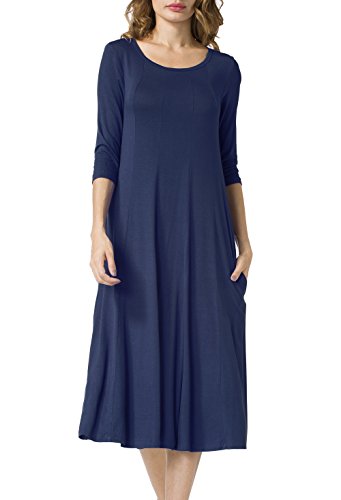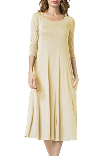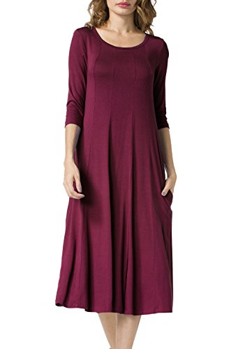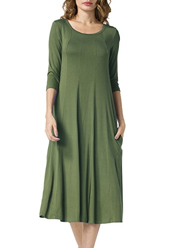 Simple Design: A-line 3/4 sleeve,round neck, plain color, two pocket, swing hem, long Midi dress