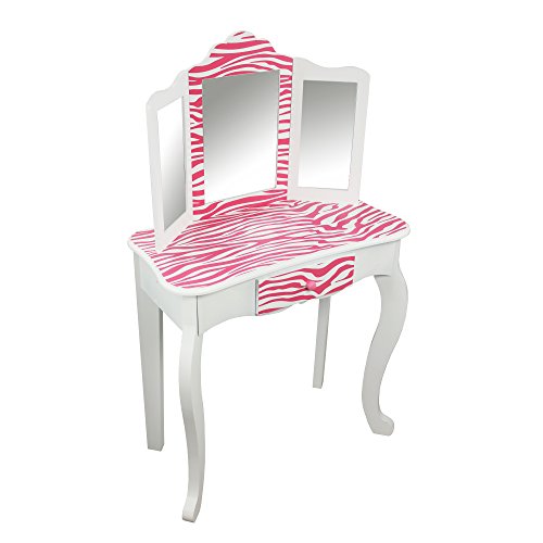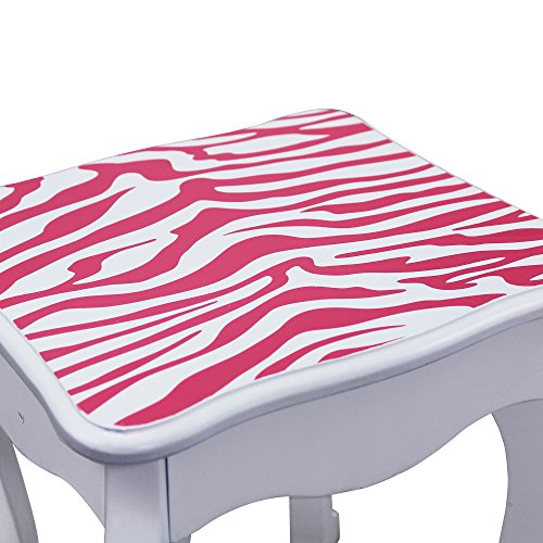 Give your diva a funky place to get beautified and indulge in the latest of fashion with the Fashion Prints Zebra Vanity & Stool Set. Gorgeous hot pink zebra print decorates the vanity while white trim blends into the design. Comes with a sturdy stool and drawer space to store all of her favorite fashion accessories.Feature