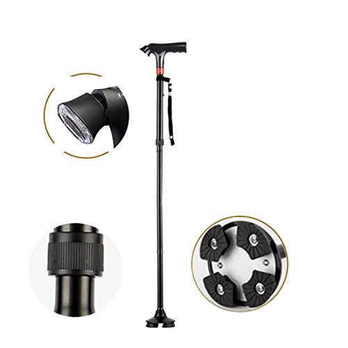 -. Title : 人気 伸縮 式杖 4本脚タイプ アルミ製 軽量 伸縮ステッキ 高輝度LED 夜間も安心 ライト搭載 5段調節可 歩行支援 転倒防止 介護用品 緊急用アラーム 収納袋付き 母/父にプレゼント お年寄り おじいちゃん おばあちゃん プレゼント 敬老の日
