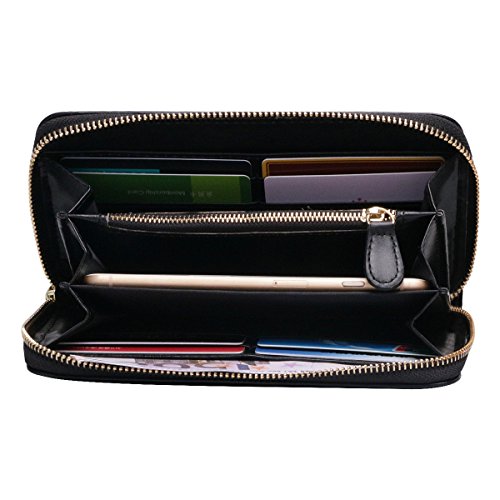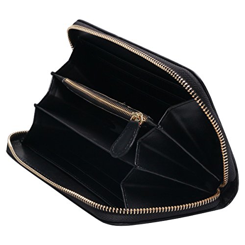 -. Feature : ♦ Taschenmaße: 19,5 x 11.5 x 2.5 cm / ♦ Material: PU-Leder, Leder ist Schwarz und auf der Außenseite geflochten , was der Geldbörse ein sehr tolles und nobles Aussehen verleiht auch der Reißverschluß der in Goldfarben ist , trägt seinen Teil dazu bei / ♦ Es gibt 8 separate Kartenfächer, je 4 auf beiden Seiten, dahinter befindet sich nochmals ein großes Fach. In der Mitte befindet sich das Fach für Kleingeld, das man mit einem Reißverschluss schließen kann, des weiteren gibt es noch 3 weitere Fächer für Geldscheine, Kassenbons etc / ♦ Die geflochtene Oberfläche der Geldbörse macht sie zu einem echten Hingucker und wer auf der Suche nach einer etwas größeren schicken Geldbörse ist, kann hier nichts falsch machen / ♦ Dieser Artikel ist groß genug für das iPhone 4/4s, iPhone 5/5s, iPhone 6/6s und Samsung Galaxy S4