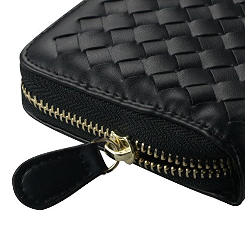 -. Title : Geflochten Reißverschluss Geldbörse Damen Portemonnaie Damen Geldbeutel,Schwarz