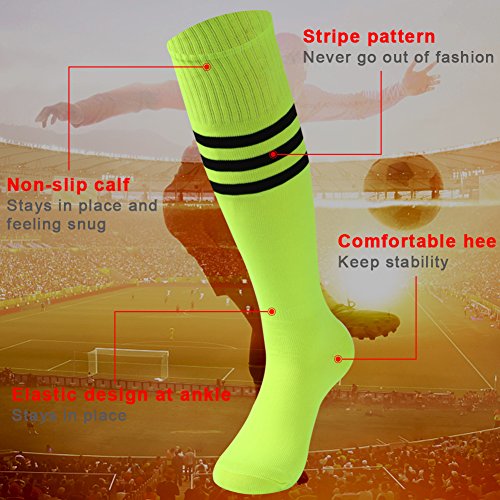 -. Title : saounisi Tube Socks Stripe, Woman Knee High Colorful Football Soccer Sports School Uniform Socks 10 Pairs Fluorescent Green