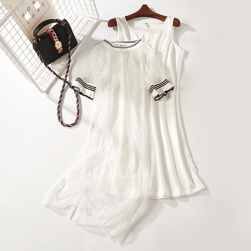 タンクワンピとネックと袖口にボーダー柄ニットのメッシュワンピのセットアップ♪