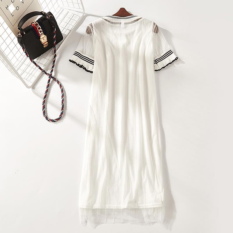 トレンドのメッシュワンピもトラッド風味をプラスしてカジュアルダウン!