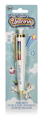 -. Binding : Office Product -. Brand : NPW -. EAN : 5037200045819 -. Feature : Magical unicorn pen makes decisions with just one click / Just click to discover what rainbow-fueled activity a unicorn would get up to and do the same / Black ballpoint pen in white plastic with rainbow window / Perfect for the unicorn obsesses friend / Entertain friends with hilarious NPW gifts and gadgets that will crack them up -. Label : NPW-USA, Inc -. Manufacturer : NPW-USA, Inc -. Model : NPW45819 -. MPN : NPW45819 -. NumberOfItems : 1 -. PackageQuantity : 1 -. PartNumber : NPW45819 -. ProductGroup : Office Product -. ProductTypeName : WRITING_INSTRUMENT -. Publisher : NPW-USA, Inc -. Studio : NPW-USA, Inc -. Title : NPW-USA Unicorn Decision Maker pen