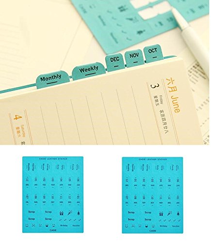 Chris-Wang 2 Sheets Self Adhesive Mini DIY Leather Monthly Calendar Index Tabs Reminder Stickers Flags for Appointment Book Events Diary Scrapbook Personal Planner (Blue)