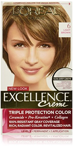 -. Binding : Misc. -. Brand : L'Oreal Paris -. Color : Brown -. EAN : 3612492105988 -. Feature : L'Oreal Excellence Creme, 6 Light Brown / UPC: 071249210598 / Pack of 3 -. IsAdultProduct : 0 -. Label : L'Oreal Paris Hair Color -. Manufacturer : L'Oreal Paris Hair Color -. ProductGroup : Beauty -. ProductTypeName : BEAUTY -. Publisher : L'Oreal Paris Hair Color -. Studio : L'Oreal Paris Hair Color -. Title : L'Oreal Excellence Creme - 6 Light Brown (Natural) 1 EA - Buy Packs and SAVE (Pack of 3)