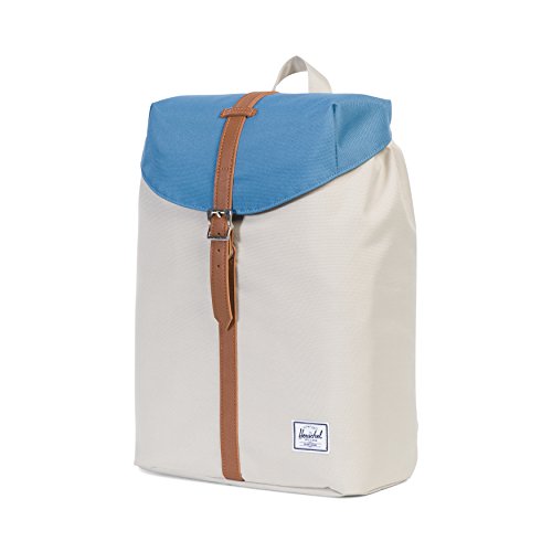 The Post Mid-Volume backpack offers a clean and compact design, equipped with a strap-fastened top flap and a hidden drawstring cinch closure.
