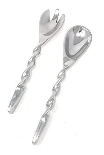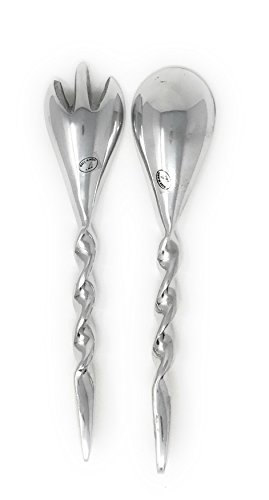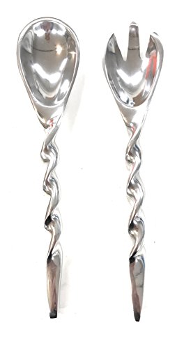 Studio : India Handicrafts Inc Publisher : India Handicrafts Inc Product Description Modern Twisted Aluminum Salad Tossers/Servers by IHI. The set of 2, includes a large fork and spoon with twisted handles. Ideal for entertaining both formal and informal. Made of highly polished cast aluminum. Each Measures Approximately: 2" W x 9.75" L. Made in India. 0