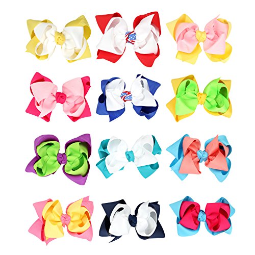 | (Onesdar)/Accessories/Hair Accessories/DIRECT FROM USA/Girls Double Layers Ribbon 2 Bows Hair Clips Multi Color, 4.72 Inch, 12 Colors |