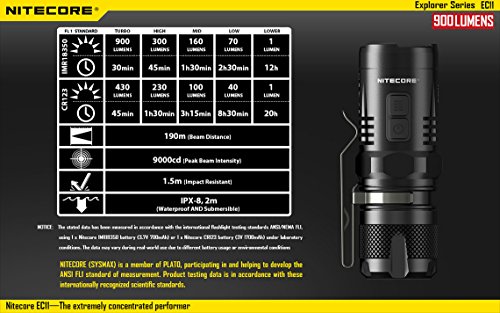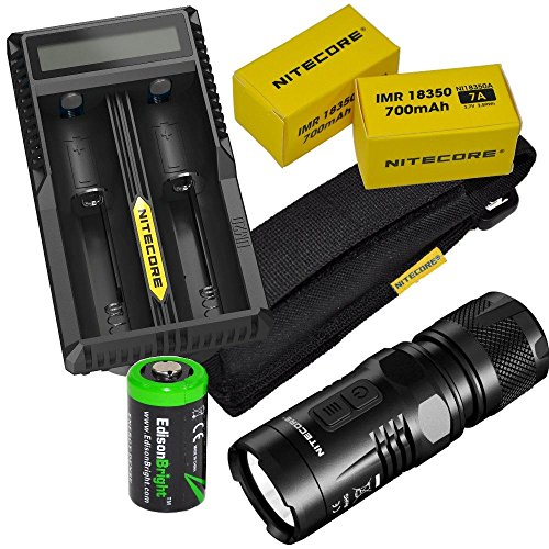 Nitecore EC11 Cree XM-L2 U2 LED Flashlight Max 900 Lumens, with Niteocre UM20 USB charger, 2 X Nitecore IMR 18350 rechargeable Batteries and EdisonBright CR123A Lithium Battery Bundle
