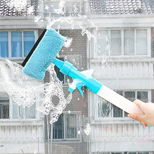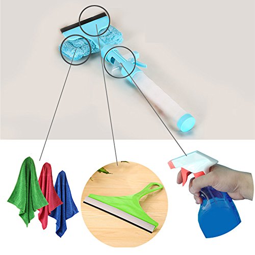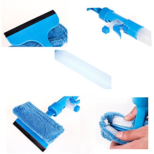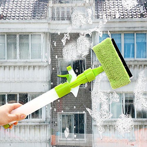 -. Feature : 3-IN-1 FUNCTION: Squeegee + Microfiber Window Scrubber + Spray Bottle, do not need more money and time to buy accessories. / MULTI-PURPOSE: Perfect for Glass, Window, Shower door and wall, tiles, Mirrors, Car Windscreen windows and table. / 3 MODES SPRAY BOTTLE: Off, stream, spray 3 different modes for your choice as your favour. / CONVENIENT: Handle can easily disassemble and assemble, convenient for clean and add water;Detachable and washable superfine microfiber cloth for easy brush. / SPECIFICATIONS: Handle Size(L*D): 31.5*4cm;Brush Head Width 15.5cm; Squeegee Width 13.2cm; Material: PP + Toweling.