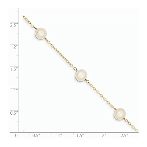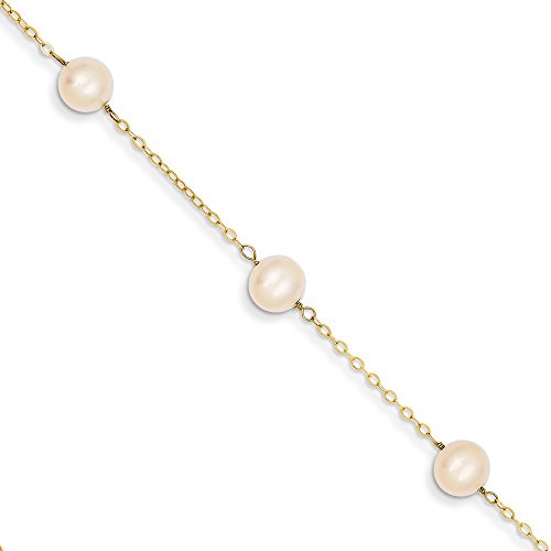 Material: - Purity:14K|Finish:Polished|Stone Type_1:Pearl|Stone Color_1:White|Chain Length:9 in|Chain Width:7 mm|Clasp /Connector:Spring Ring|Material: :Gold|Stone Treatment_1:Bleaching|Product Type:Jewelry|Anklet Type:Anklets with Stations|Material: - Color:Yellow|Pearl Type_1:Freshwater|Stone Creation Method_1:CulturedFeature