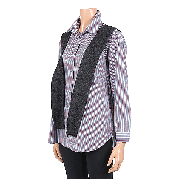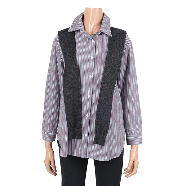 기본 스트라이프남방에 니트티셔츠를 어깨에 붙여서 캐쥬얼한 디자인의 상품입니다