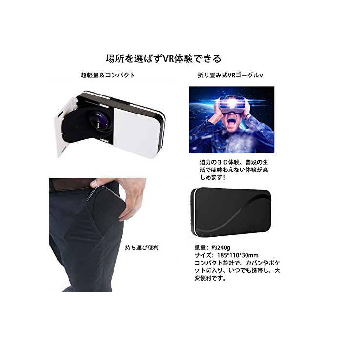 원본상품명: YiFang VR ゴグル VR ヘッドセット 3Dメガネ 折りみ式 超3D映像/ゲム 近視 超薄型 4.7~6.0インチ iPhone/SONY/HTC/Samsungなどのスマホ