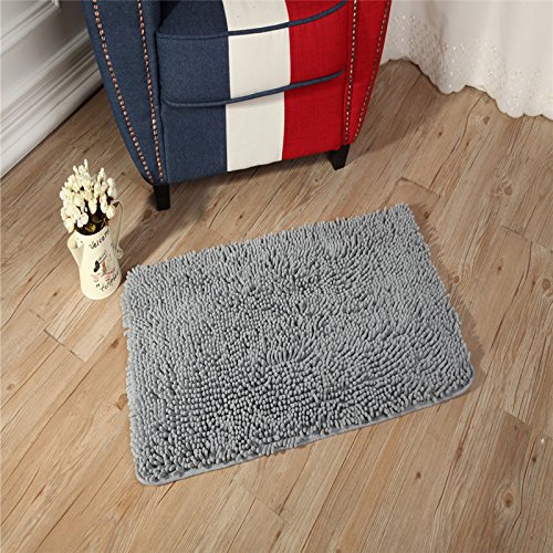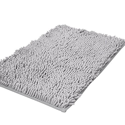 Chenille Shaggy Bathroom Mat, Zeafeel Non-slip Soft Absorbent Kitchen Floormat Bath Rugs Floor Mat Carpet (19"W x 30"L, Grey)
