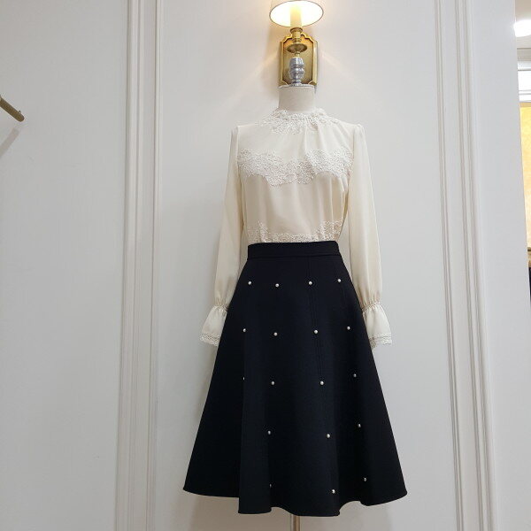 네크에 자수가 들어가 고급스러워보임. 팬츠,스커트등 다양하게 코디가능.