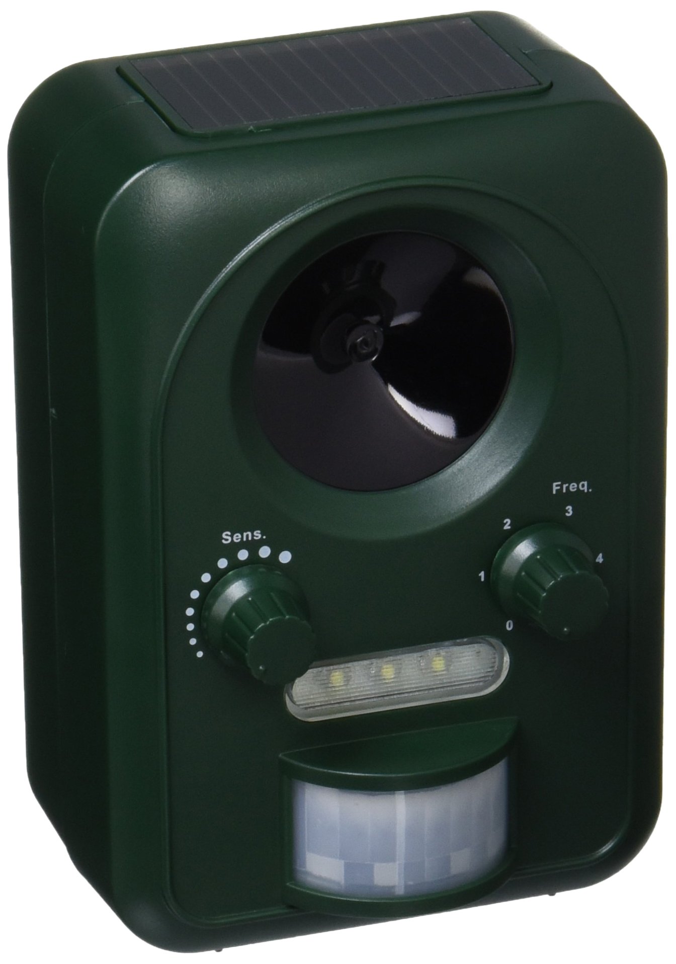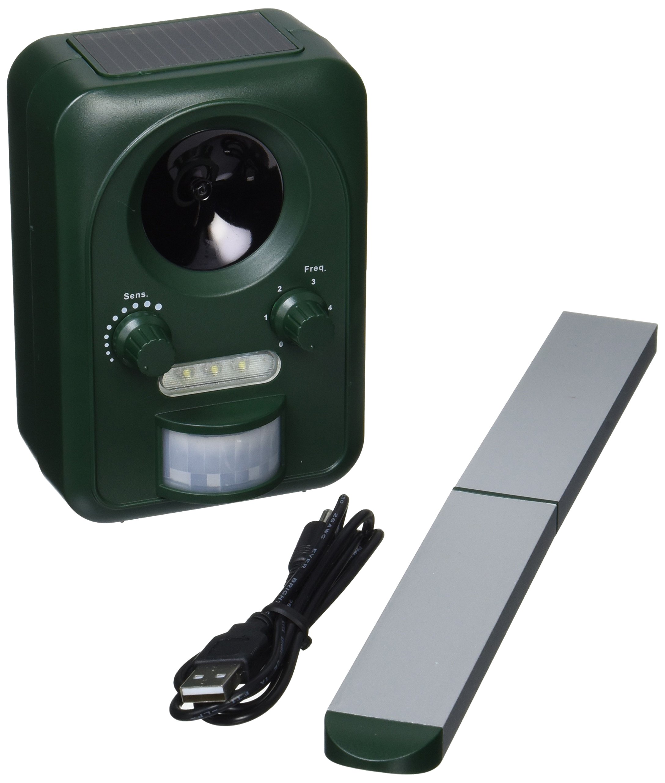 Keep animals such as cats and rats away with ultrasonic waves of settable frequency, keep birds away by flashlight