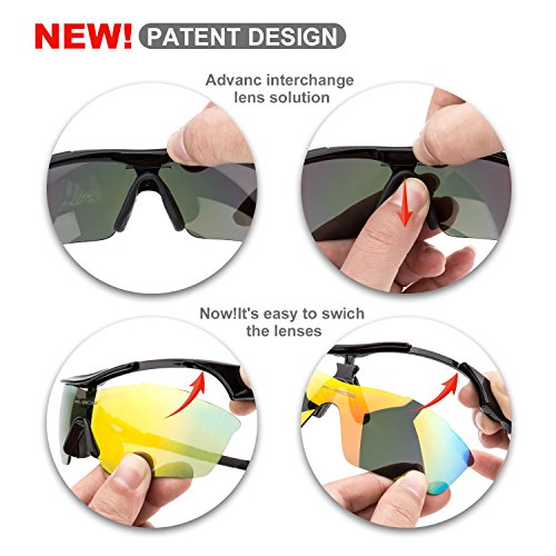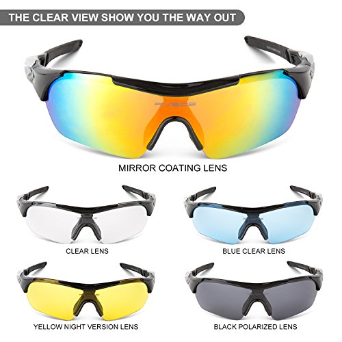 5 Shatterproof Lens:The Main Black lens is Polarized Lenses Against Strong Sunlight, the Other 4 Lens are Colored Sunglasses for Different Environmental Condition