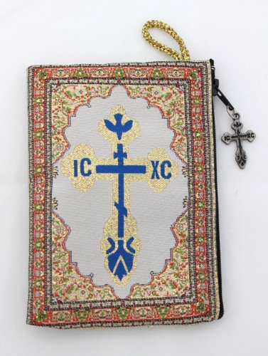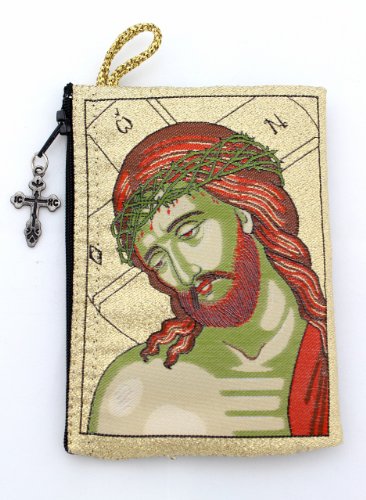 - Reverse Side WITH A CROSS "IC XC" (THE FIRST LETTERS OF THE GREEK WORDS FOR JESUS CHRIST) WITH A DOVE (REPRESENTING THE HOLY SPIRIT). THIS ICON POUCH, LINED WITH A ZIPPER FOR CLOSING, IS PERFECT AS A ROSARY OR PRAYER ROPE CASE.