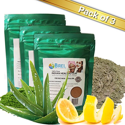 -. Title : Clay Mask - Bentonite, Aloe Vera & Lemon Peel Powder (Pack of 3). Indian Healing Clay, Fullers Earth Powder for Facial Mask, Hair, Bath & Spa