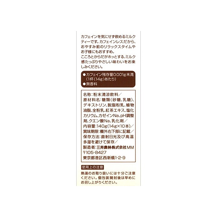 원본상품명:日東紅茶 カフェインレスミルクティ? スティック 10本入り