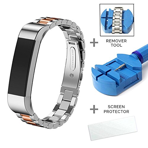 -. Feature : Bens Style fitbit alta bands metal, personalized your fitbit alta and alta hr smart fitness tracker to match your daily with different colorful and fashionable choice / Unique design, fitbit alta premium stainless steel replacement bands come with unique silicone cover design which is fasionable craftsmanship, durable, and comfortable touch feeling on your wrist, perfect for daily wear / Top quality, fitbit alta wristband is with high quality double button folding clasp, enable you to lock or unlock without any hassles / Package includes, 1 fitbit alta metal barcelet and 1 removal tool and Screen Protector. / Full services, 100% money back guarantee if the fitbit alta band doesn't fit or meet all of your expectations.