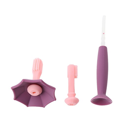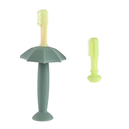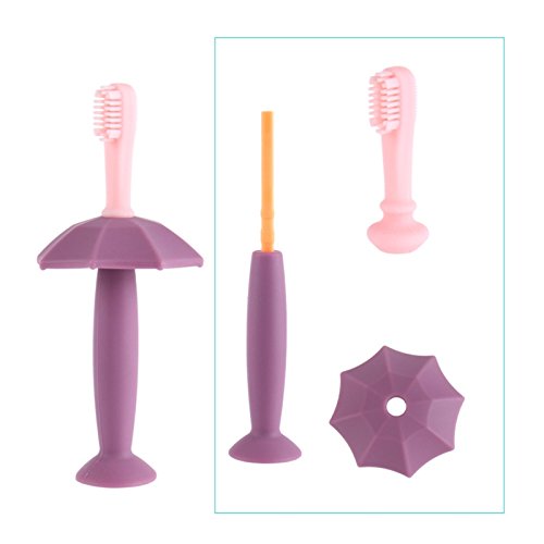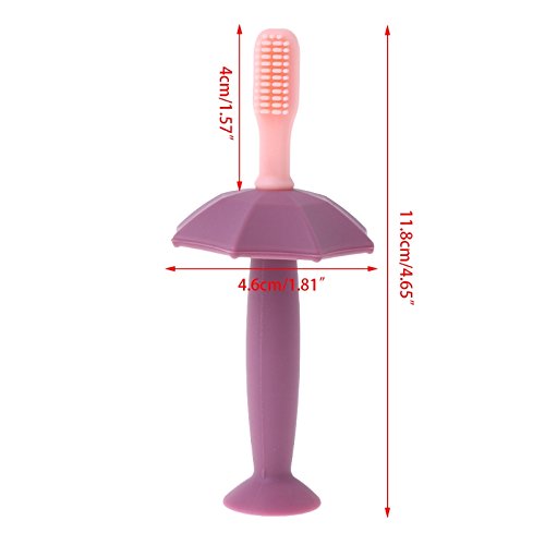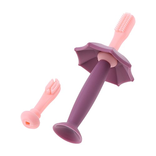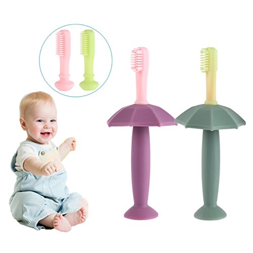 -. Title : New Umbrella Silicone Baby Toothbrush and Teether, Standing with Suction Cup for Hygiene, Made with 100% Food Grade Silicone,