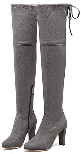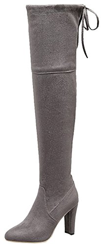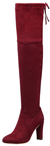 (Mofri)/Women's/Boots/DIRECT FROM USA/Mofri Women's Fashion Chunky High Heel Pointed Toe Faux Suede Side Zipper Over The Knee Boots W...
