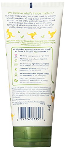 -. Binding : Health and Beauty -. Brand : Tom's of Maine -. Label : Tom's of Maine -. Manufacturer : Tom's of Maine -. ProductGroup : Health and Beauty -. ProductTypeName : HEALTH_PERSONAL_CARE -. Publisher : Tom's of Maine -. Studio : Tom's of Maine -. Title : Tom's of Maine Baby Moisturizing Lotion