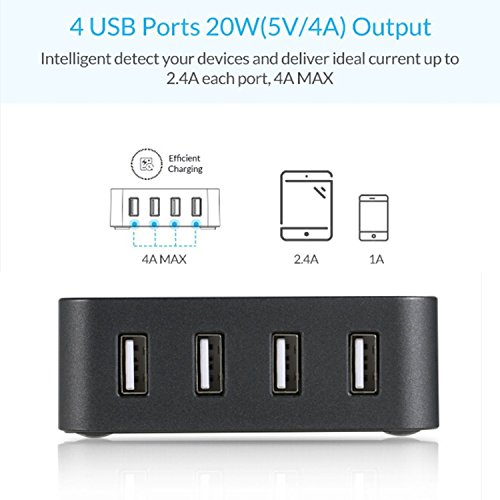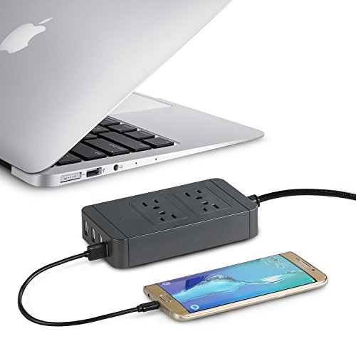 3.Power Strip with USB Ports: 4-Outlet 100-240 V 10 A, 4 USB Ports 5V 2.4A, Intelligent charging technology can perceive and deliver the fastest possible charge speed up to 2.4 amps per port for iPhone 7/7 Plus/6/6S Plus/5S/SE, iPad Air mini, Samsung Galaxy S7/S6 edge, Kindle Fire and other USB powered devices.